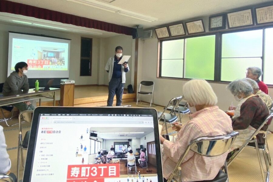 自治会活動 2023年11月27日その他の活動 自治会サイト発表会 東京都の地域の底力の助成金を活用して、寿町3丁目自治会のサイトを制作しました。発表会では… 2023年9月1日地域活動 公会堂清掃 自分たちで建てた大切な公会堂なので、建設してからずっと班長さんと有志で月に1回、公会堂を清… 2023年8月19日その他の活動 スマホ教室 スマホは便利であると同時に使い方にも注意が必要ですが、高齢者が使えるようになると安否確認な… 2023年8月1日イベント 盆踊り 毎年8月1日に近い土日は寿町中央公園を使って盆踊りを開催します。以前は寿町2・3丁目自治… 2023年7月15日地域活動 熱中症予防グッズ配付 府中市の高齢者見守り事業の一環として、熱中症予防グッズとチラシの配付がありますが、今年は準… 2023年5月5日その他の活動 こども神輿の町内巡行 毎年、大國魂神社の例大祭の際に、寿町2・3丁目自治会では子ども神輿の町内巡行を行っています… 2023年4月12日その他の活動 総会 毎年4月に総会を開催し、事業報告、決算、事業計画、予算について審議します。 2022年12月20日その他の活動 公会堂の大掃除 公会堂は毎月第2土曜日に班長を中心に清掃を行っていますが、年末には公会堂の大掃除をして、蕎… 2022年12月12日地域活動 歳末の夜警 毎年、寿町2・3丁目自治会では、年末に拍子木を鳴らしながら地域のパトロールを行っています。… 2022年1月1日地域活動 元旦町内廻り 寿町囃子連(府中囃子保存会寿町支部)が、毎年元旦に獅子舞とお囃子を披露しながら各家庭を回り… 2020年7月19日イベント トランシーバー講習会 府中市自治会連合会から災害時の連絡に活用するためトランシーバーの貸与を受けています。いざと… 2020年5月7日地域活動 介護予防教室 安立園包括支援センターのスタッフの指導で元気一番府中体操を覚えて、その後は百人一首の写し書… Prev 1 2 3 Next